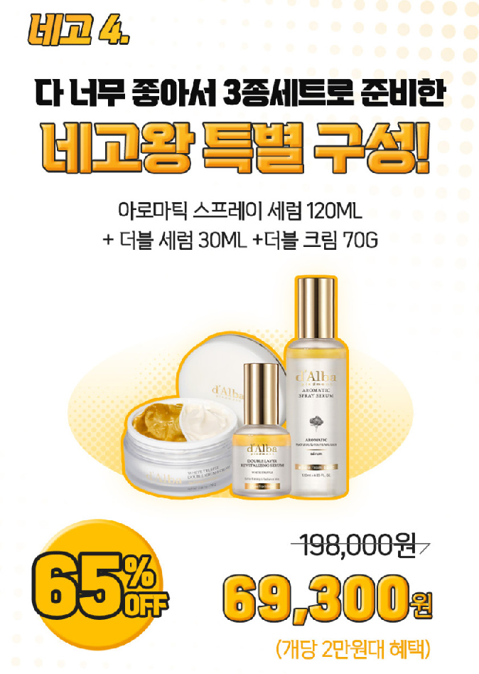 4번 품목은 한번에 3종 세트 (세럼 + 더블세럼 + 크림) 69,300원