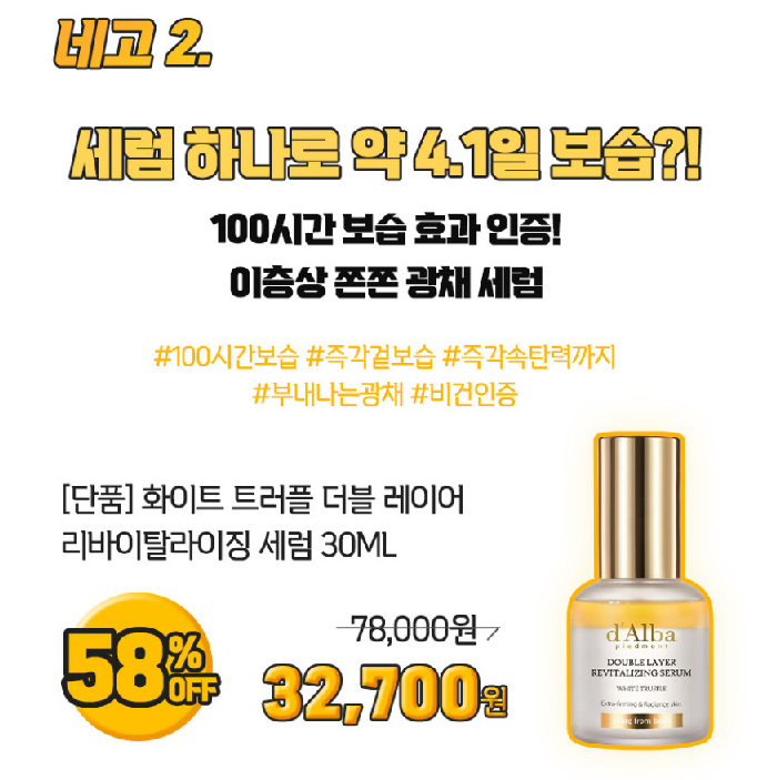 달바 화이트 트러플 더블 레이어 세럼 이탈리아 비건 탄력 광채 보습