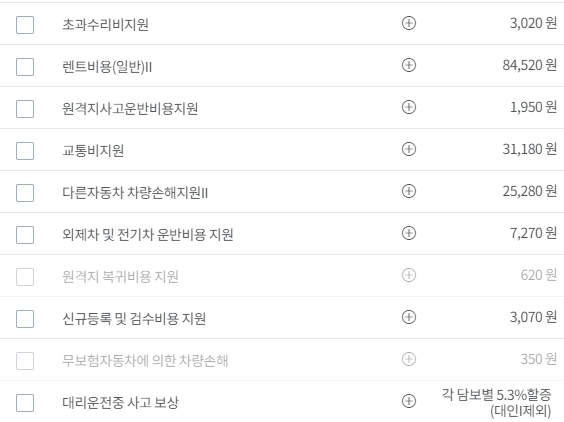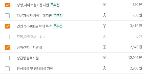 ㅁ 다른자동차 차량손해지원II : 미설정 했어요. 개인별 상황 고려하려 선택하세요.