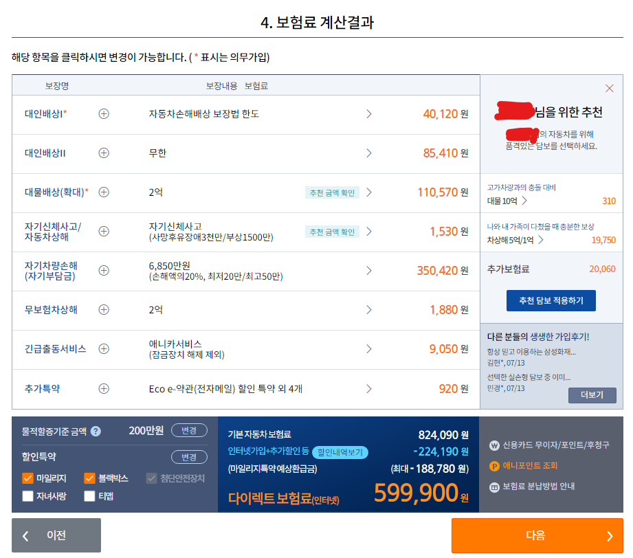 여기서 나온 견적을 기반으로 결국 각각의 보험사의 견적을 다시 확인하면 비용이 달라지니까, 그냥 저렴한 보험을 찾는데 활용하는 정도로 이용하세요.
