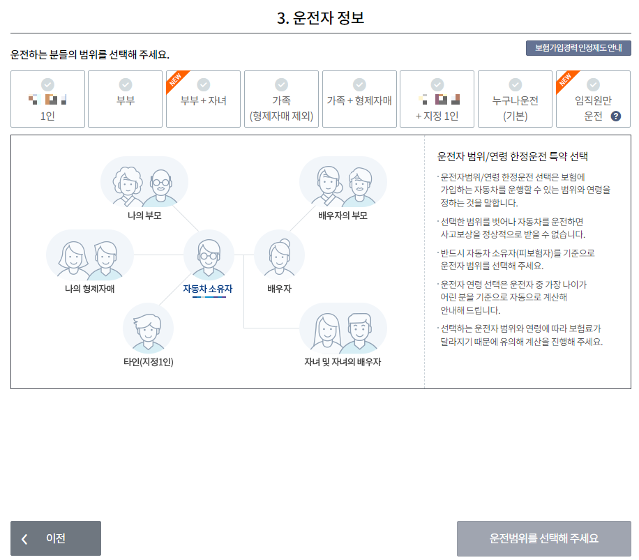 당연히 운전자가 많으면 많을 수록 보험료가 비싸지니 실제 운전하실 분으로 맞게 지정해서 진행해주세요.