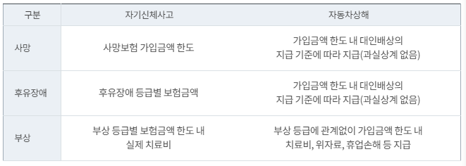 둘의 차이를 간단히 말하면 자동차상해가 더 많은 보장을 해줘요. 휴업손해, 위자료, 손해액에 해당하는 금액