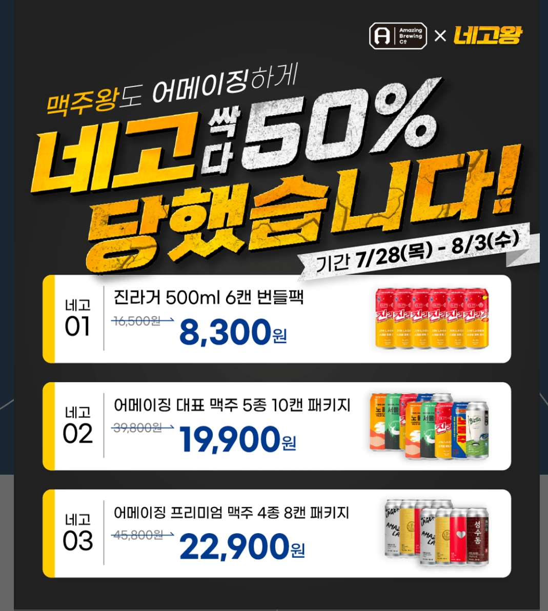 두번째. 대표 맥주 5종 10캔 패키지 19,900원!!!