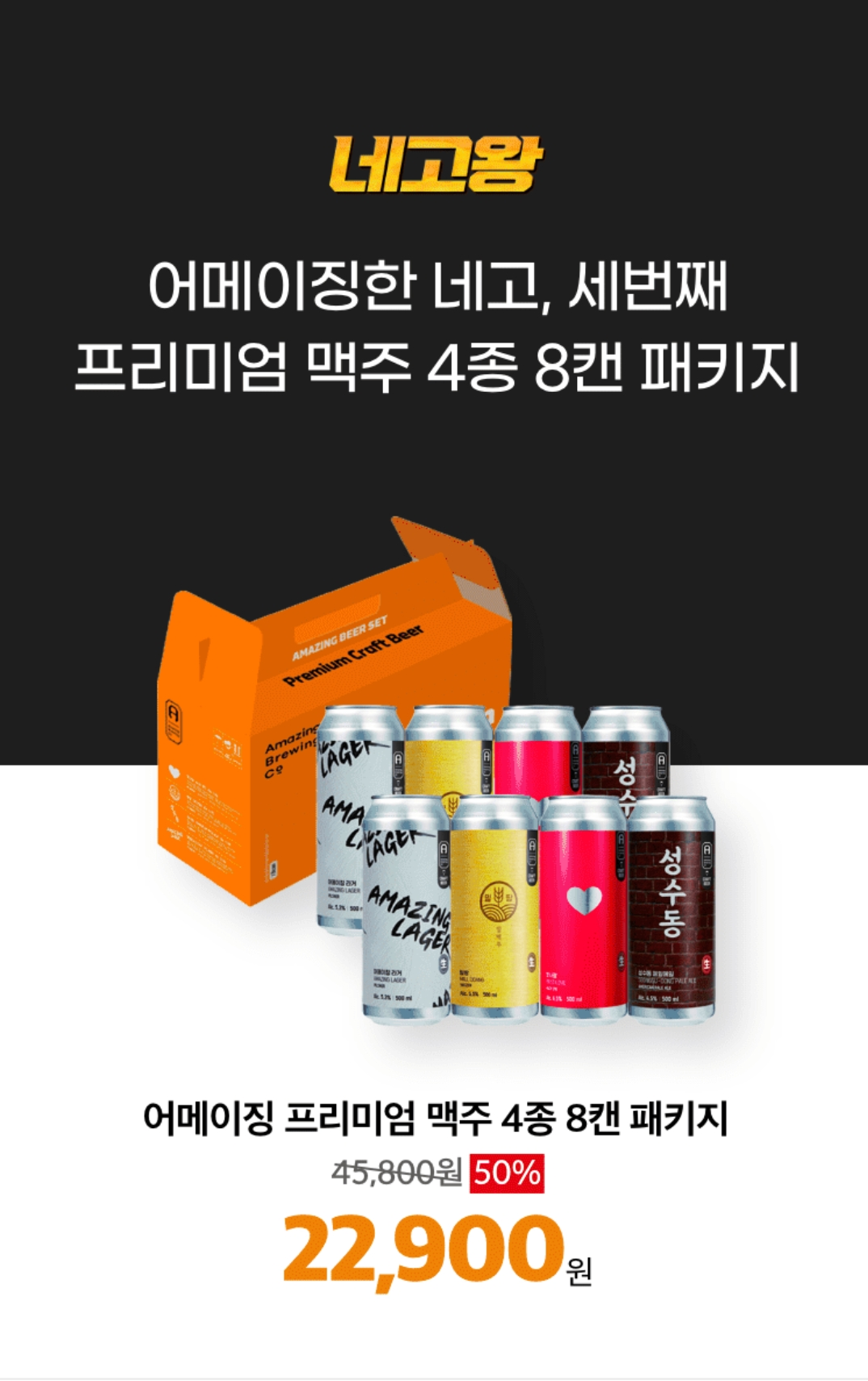 세번째. 프리미엄 맥주 4종 8캔 패키지 22,900원!!!