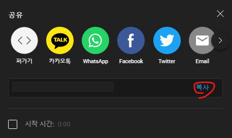 그럼 아래처럼 팝업이 뜨는데, 거기서 URL 주소 [복사] 버튼을 눌러주세요.