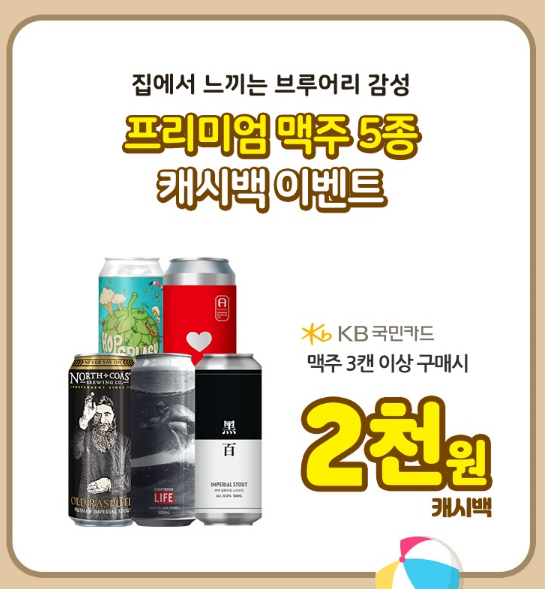[KB국민카드 프리미엄 맥주 3캔 이상 시 2천원 캐시백]