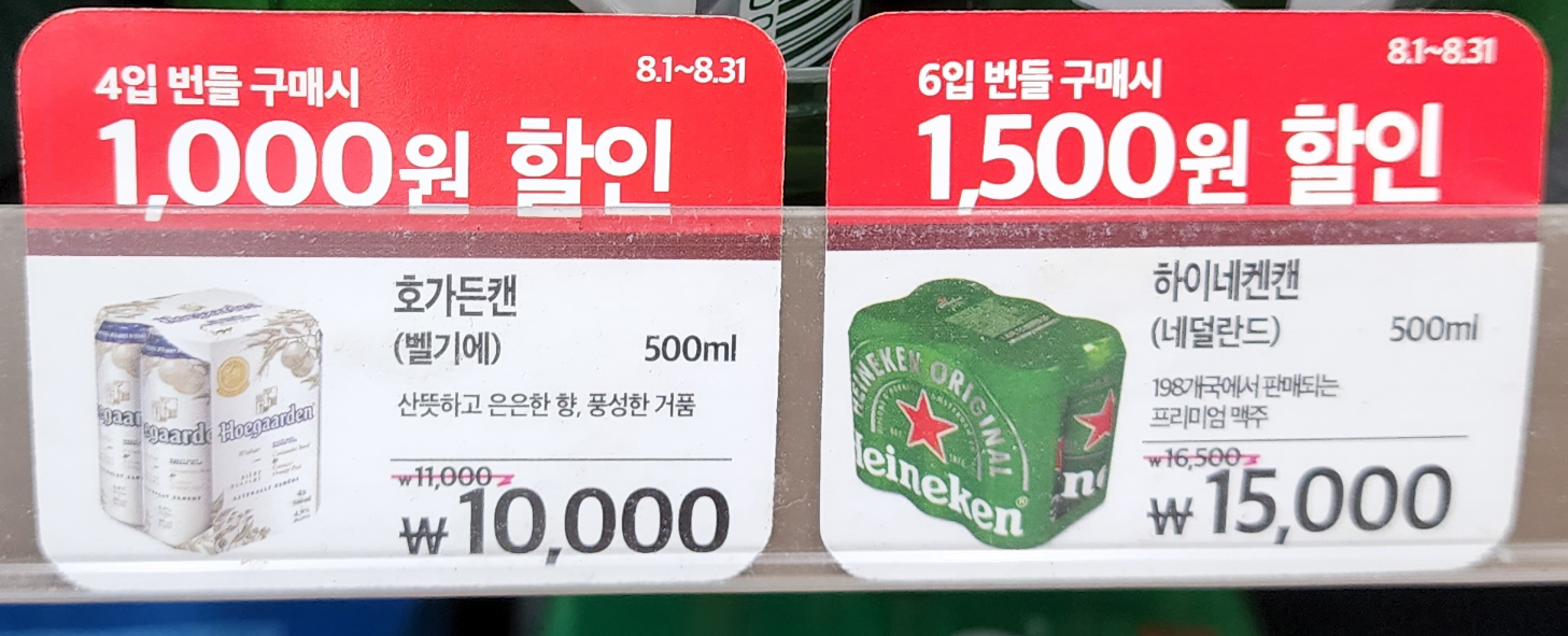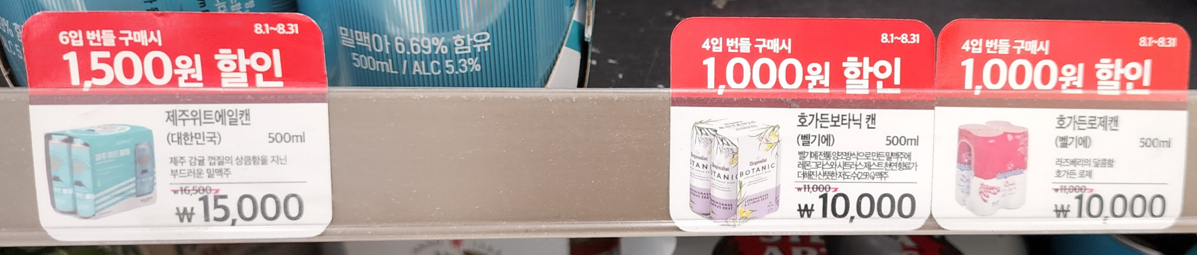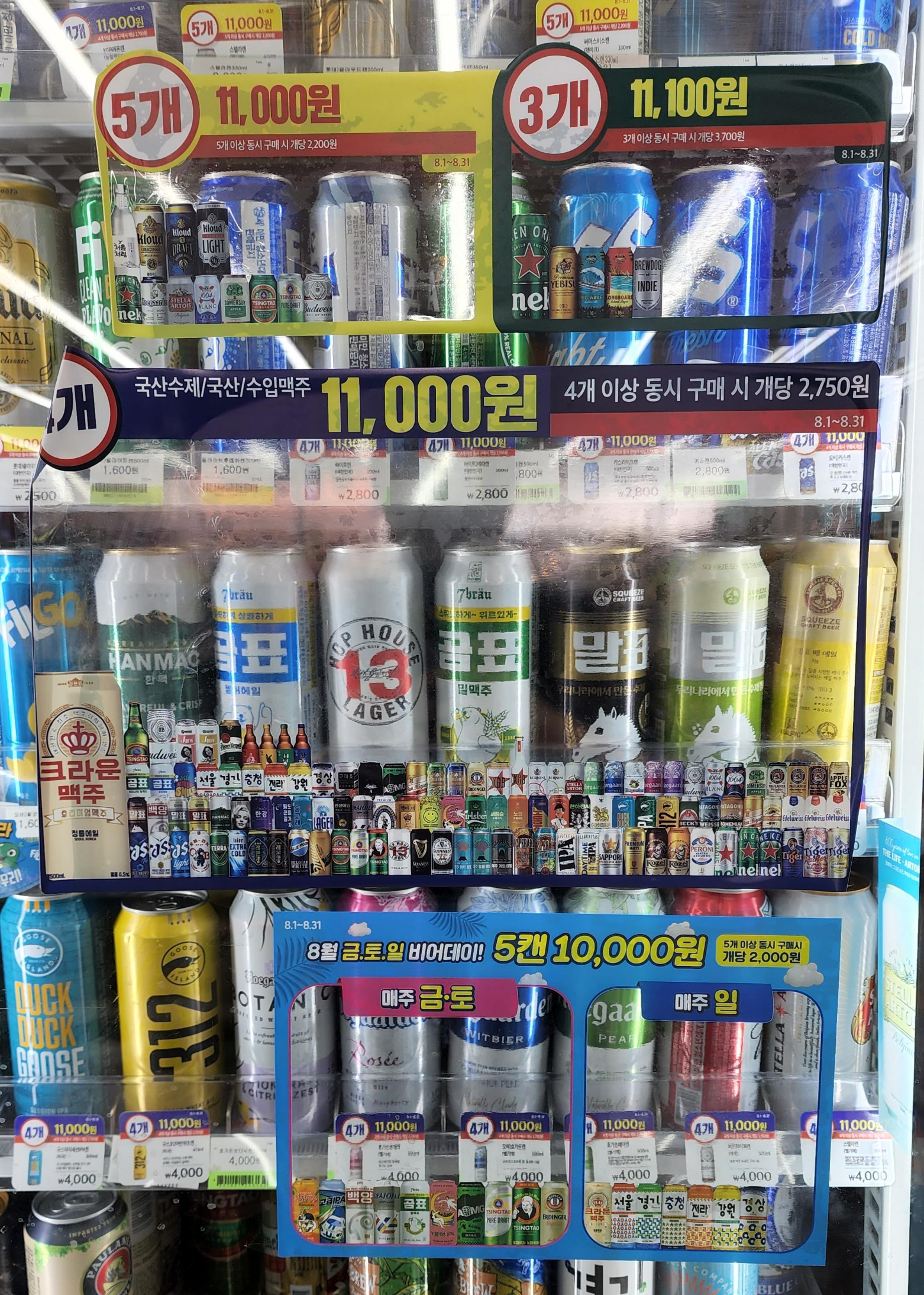 프리미엄 맥주라 3캔이상 2천원이네요.
