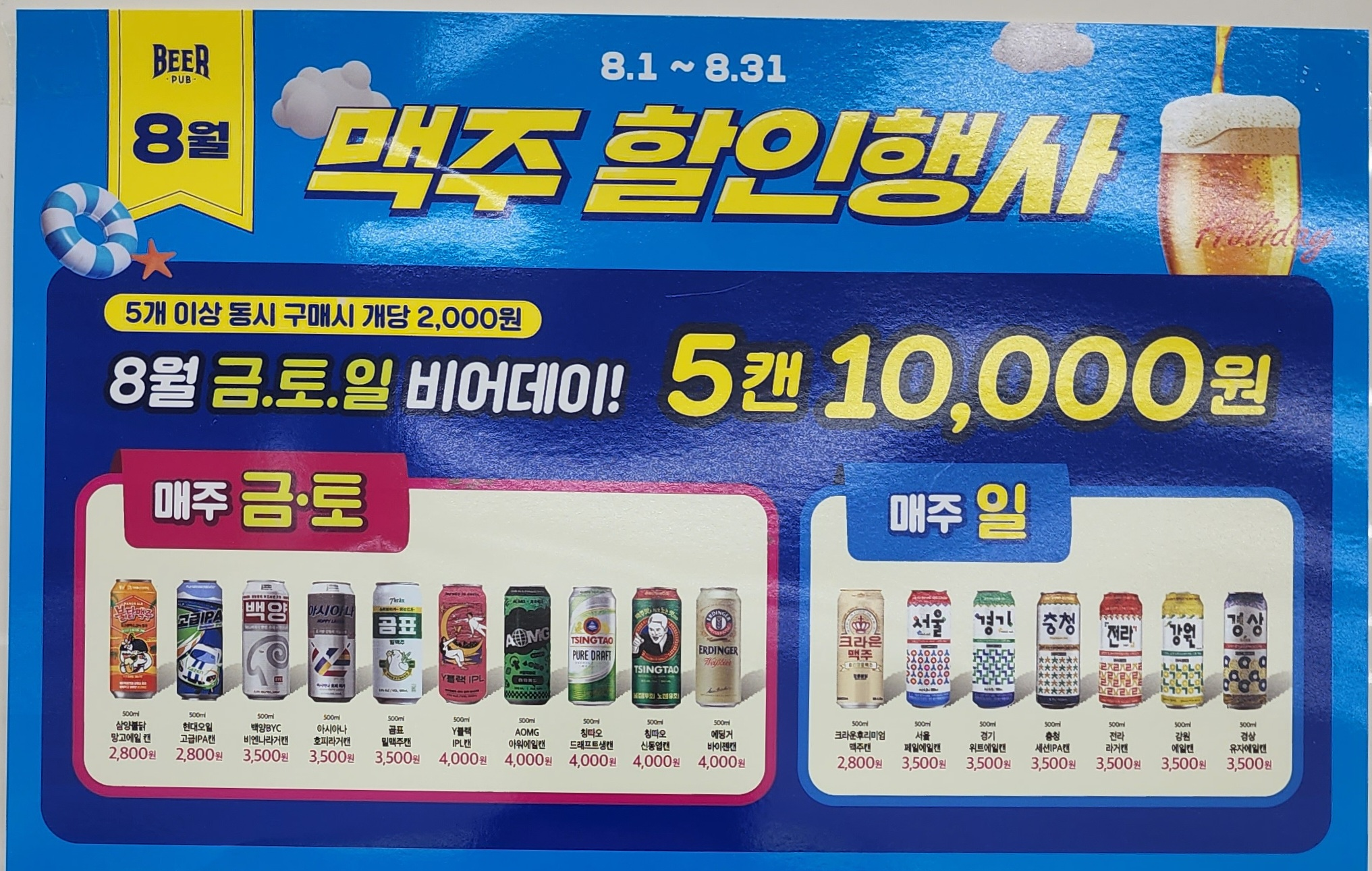 비어데이 5캔 만원이네요. 역시 주말엔 맥주인가봐요.