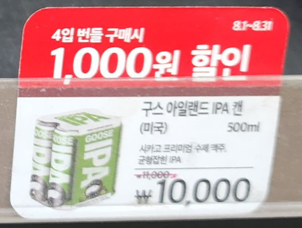 맥주 라인업이 다양하진 않지만, 어짜피 4캔 먹는다는 가정하에 옵션으로 괜찮네요.