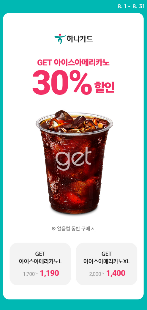 얼음컵이랑 아메리카노 함께해서 가격의 30%면 상당히 괜찮네요.