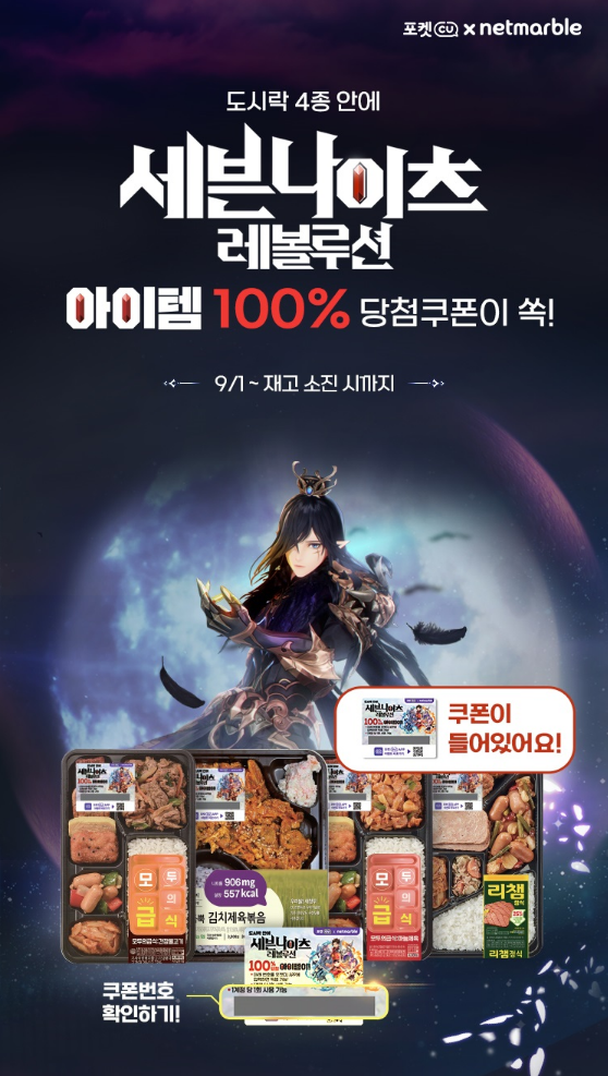 도시락을 사면 세븐나이츠 레볼루션 쿠폰을 증정한다고 하네요.