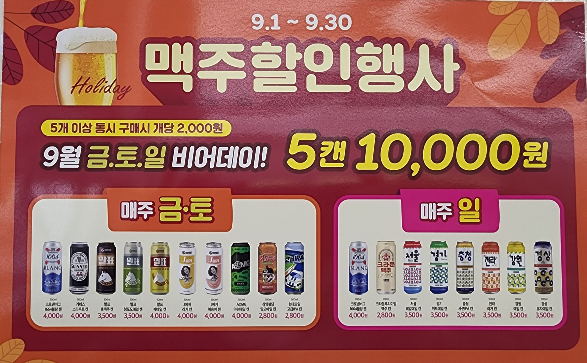 매력적인 맥주 할인과 함께 명절을 보내 보시죠. ^^