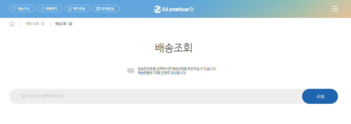 'GS25' 와 마찬가지로 아래 링크를 통해 들어가신 후 중앙에 운송장 번호를 입력하시면 배송상태를 조회하실 수 있어요.