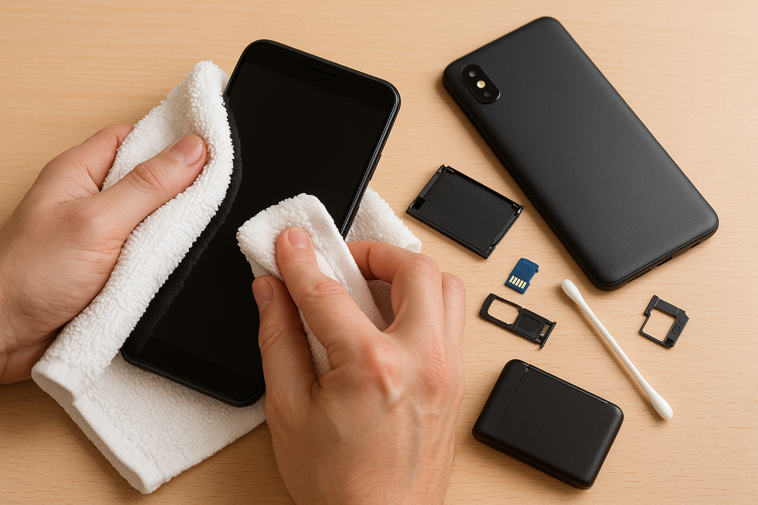 - 단자나 스피커, 버튼 틈새는 면봉·종이타월 등으로 조심스럽게 닦기